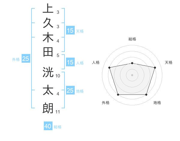 上久木田 洸太朗さんを姓名の画数から五運を鑑定