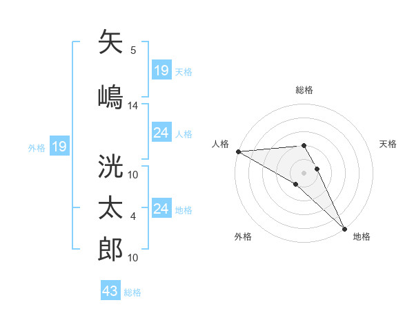 矢嶋 洸太郎さんの地格は24画の5点!
