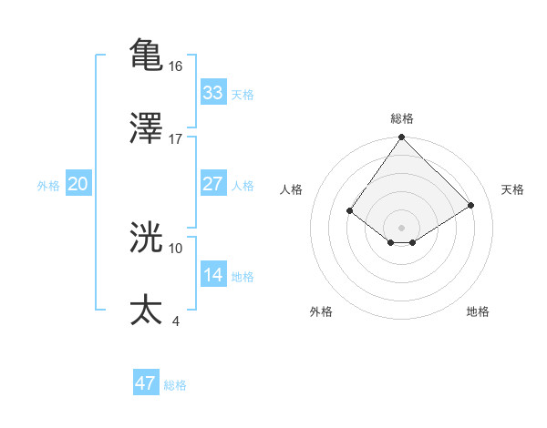 亀澤 洸太さんを姓名の画数から五運を鑑定