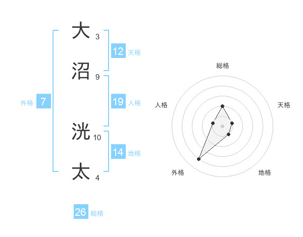大沼 洸太さんを姓名の画数から五運を鑑定