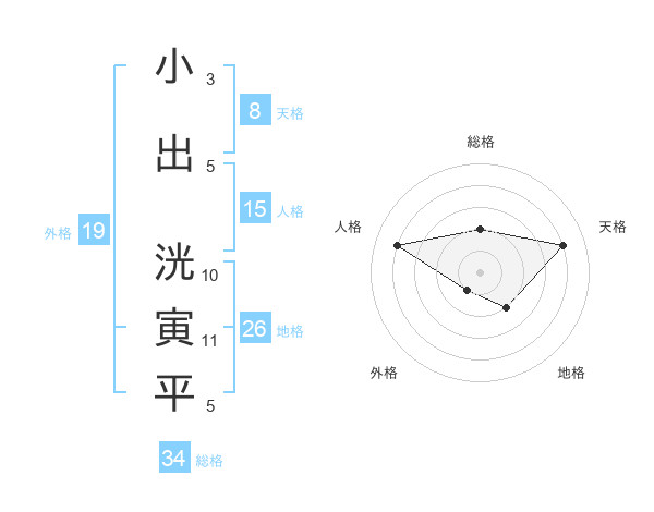 小出 洸寅平さんを姓名の画数から五運を鑑定