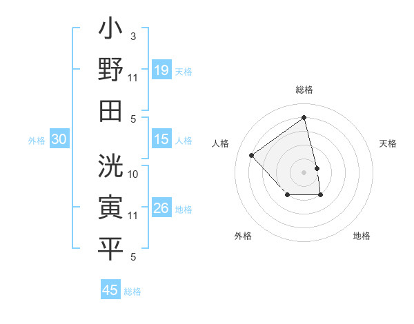 小野田 洸寅平さんを姓名の画数から五運を鑑定