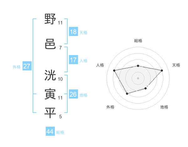 野邑 洸寅平さんを姓名の画数から五運を鑑定