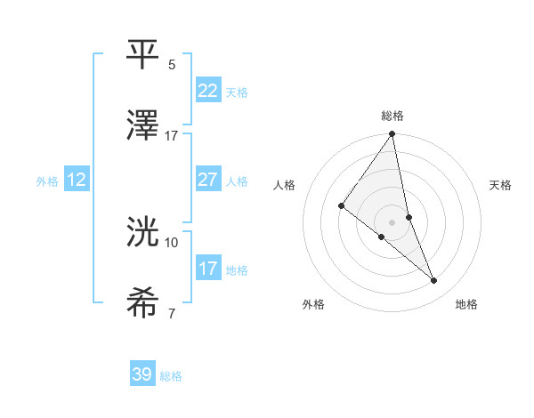 平澤 洸希さんを姓名の画数から五運を鑑定