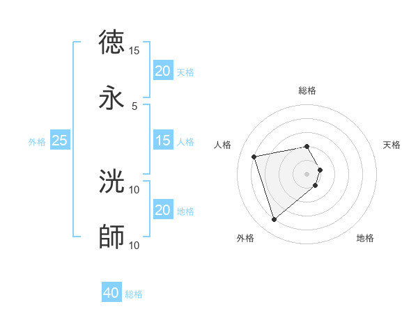 徳永 洸師さんの天格は20画の1点!