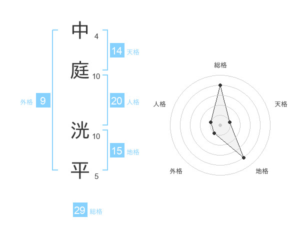 中庭 洸平さんを姓名の画数から五運を鑑定