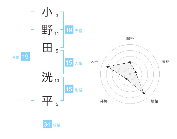 小野田 洸平さんの総格は34画の2点!