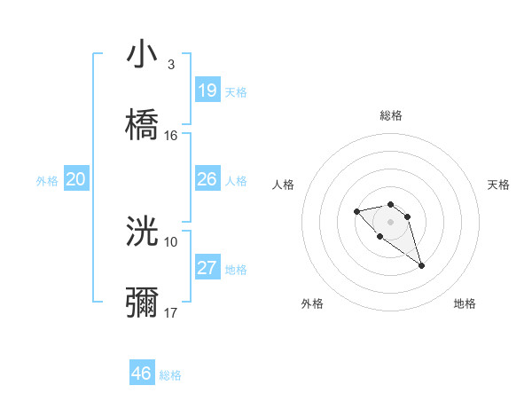 小橋 洸彌さんを姓名の画数から五運を鑑定