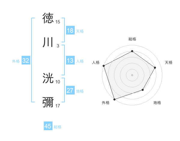 徳川 洸彌さんの総格は45画の4点!