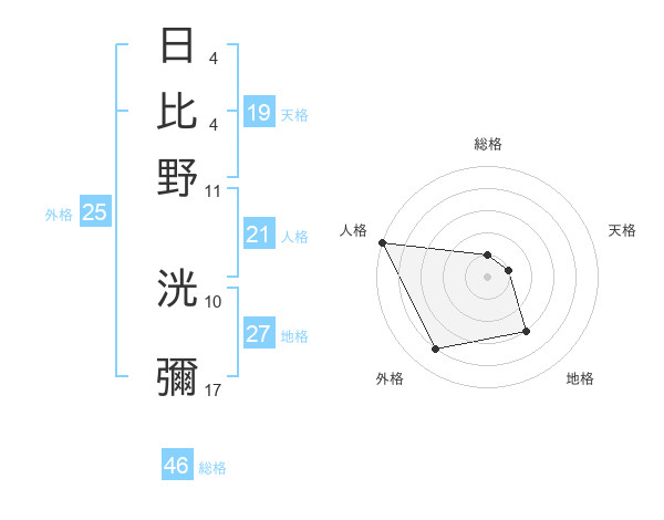 日比野 洸彌さんを姓名の画数から五運を鑑定