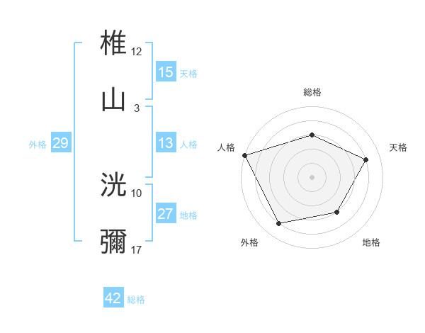 椎山 洸彌さんの天格は15画の4点!