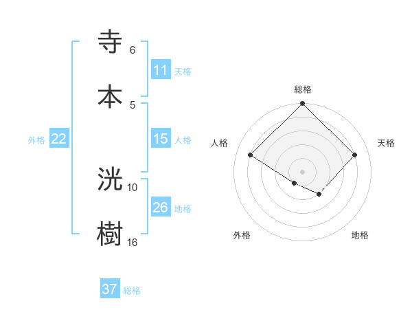 寺本 洸樹さんの総格は37画の5点!