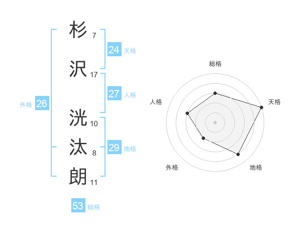 杉沢 洸汰朗さんの天格は24画の5点!