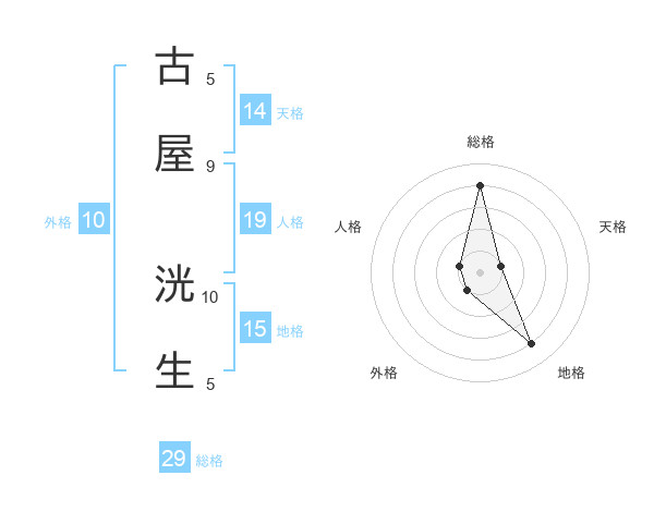 古屋 洸生さんの総格は29画の4点!