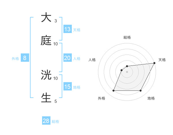 大庭 洸生さんの総格は28画の1点!
