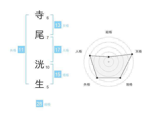 寺尾 洸生さんを姓名の画数から五運を鑑定