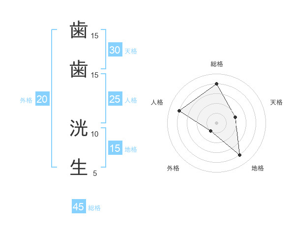 歯歯 洸生さんの総格は45画の4点!