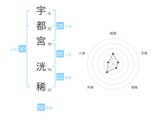 宇都宮 洸稀さんを姓名の画数から五運を鑑定