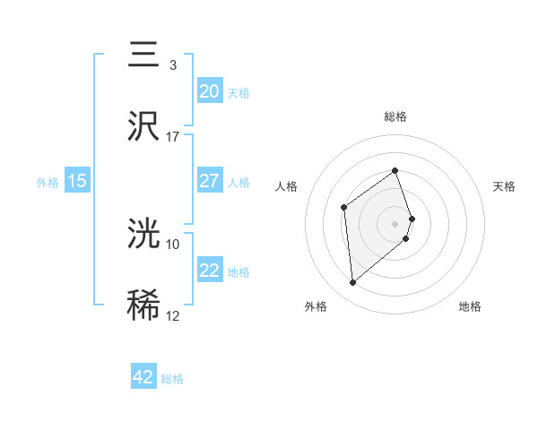 三沢 洸稀さんを姓名の画数から五運を鑑定