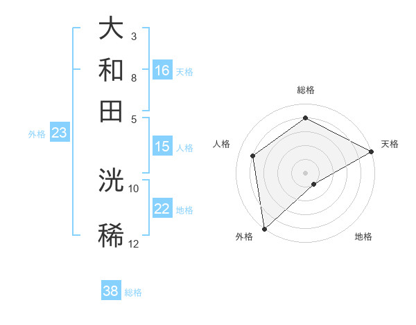 大和田 洸稀さんの外格は23画の5点