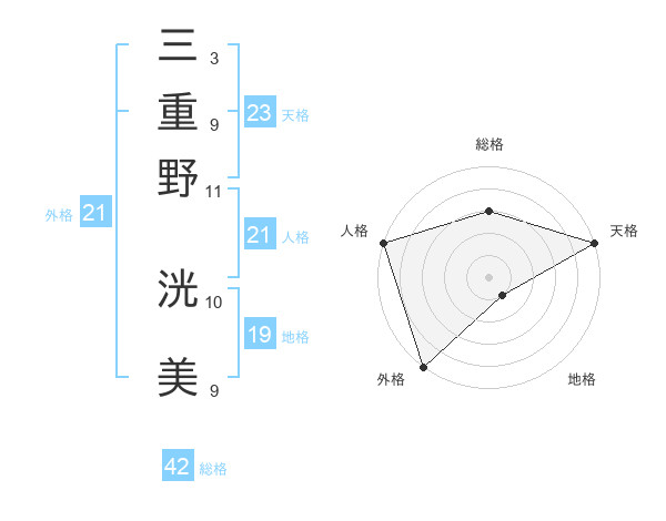 三重野 洸美さんの天格は23画の5点!