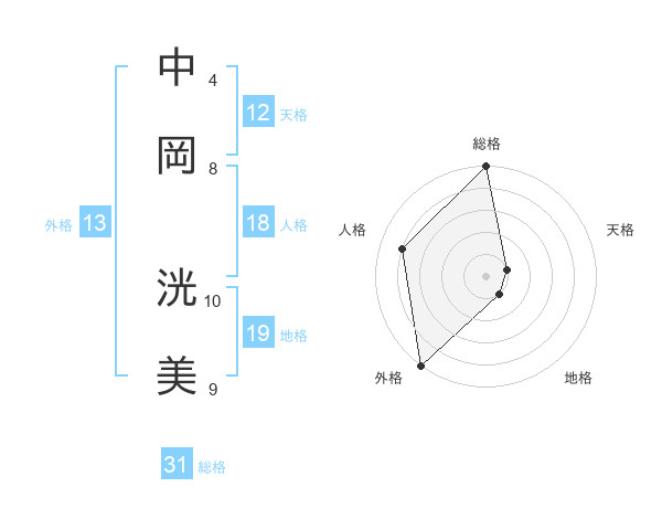 中岡 洸美さんを姓名の画数から五運を鑑定