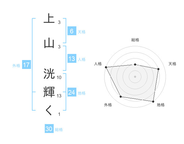 上山 洸輝くさんを姓名の画数から五運を鑑定