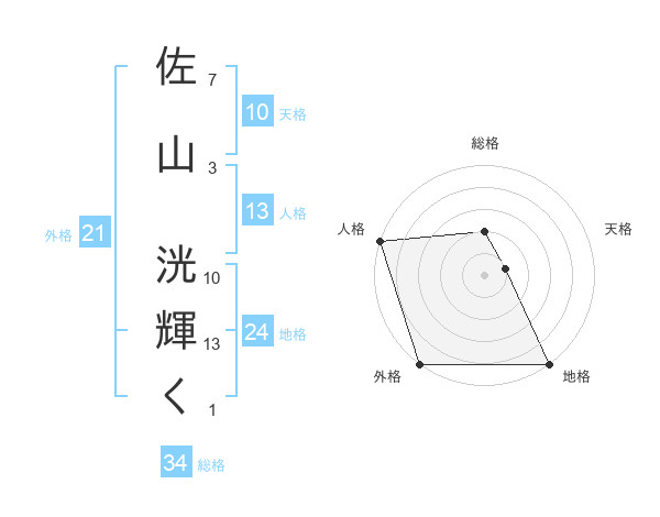 佐山 洸輝くさんを姓名の画数から五運を鑑定