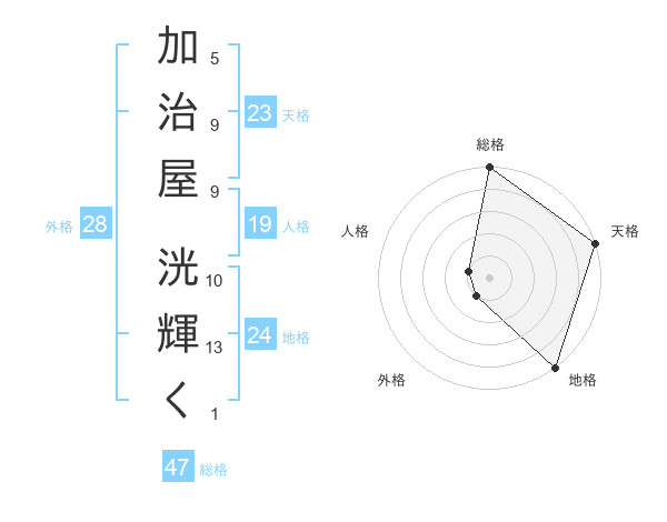 加治屋 洸輝くさんを姓名の画数から五運を鑑定