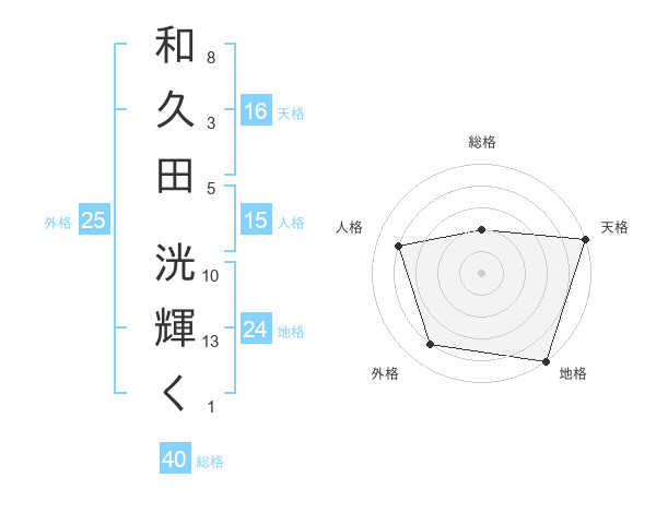 和久田 洸輝くさんを姓名の画数から五運を鑑定