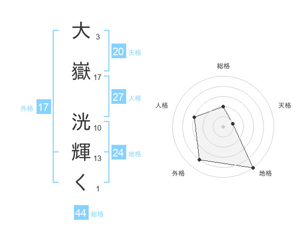 大嶽 洸輝くさんを姓名の画数から五運を鑑定