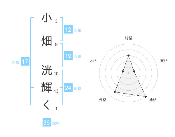 小畑 洸輝くさんを姓名の画数から五運を鑑定