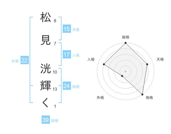 松見 洸輝くさんの総格は39画の5点!
