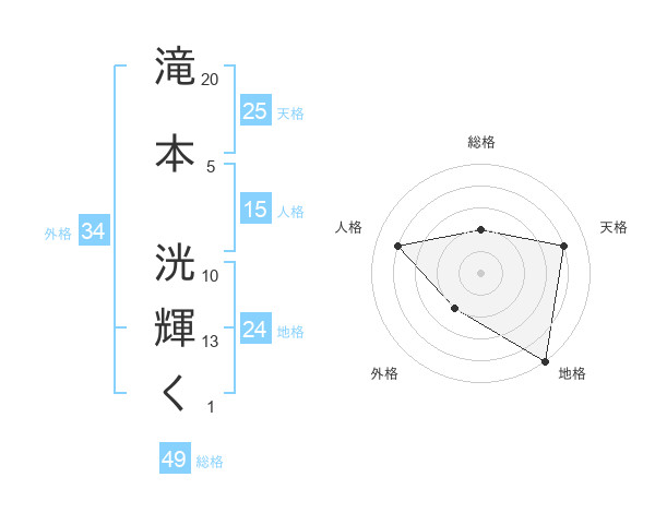 滝本 洸輝くさんを姓名の画数から五運を鑑定
