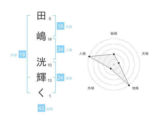 田嶋 洸輝くさんを姓名の画数から五運を鑑定