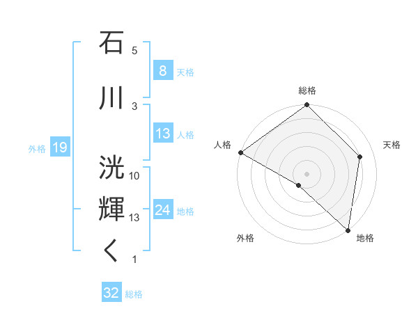 石川 洸輝くさんを姓名の画数から五運を鑑定