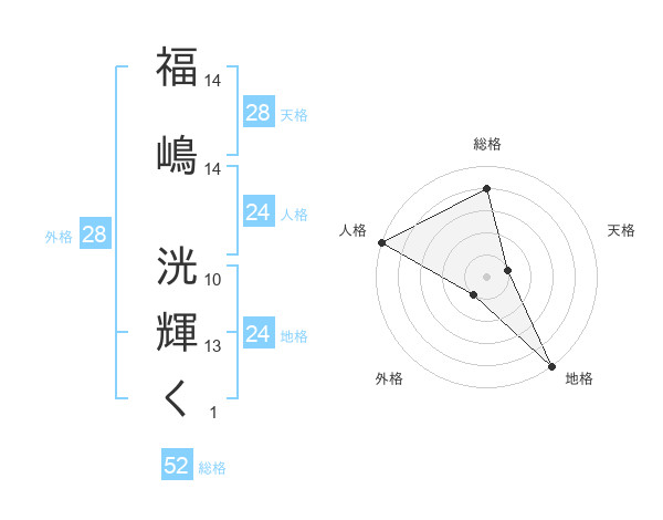 福嶋 洸輝くさんを姓名の画数から五運を鑑定