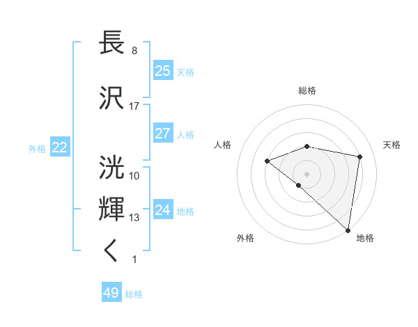 長沢 洸輝くさんを姓名の画数から五運を鑑定