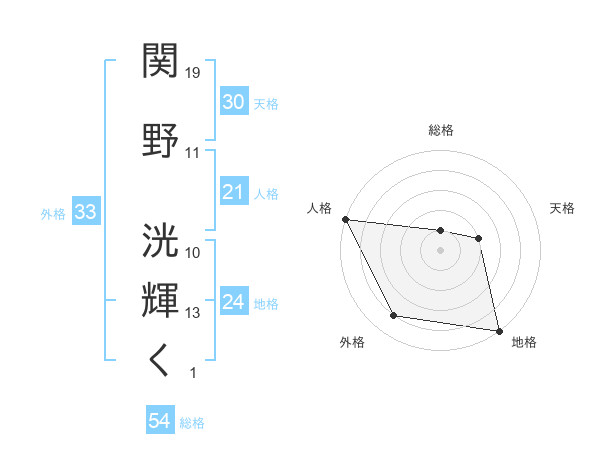 関野 洸輝くさんの天格は30画の2点!