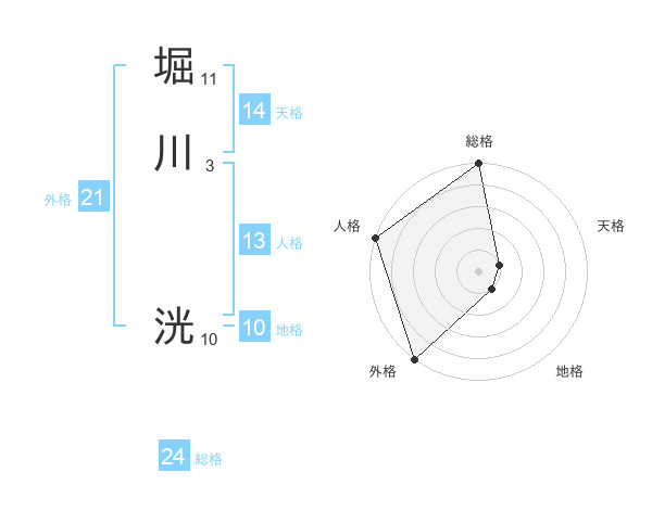 堀川 洸さんの総格は24画の5点!