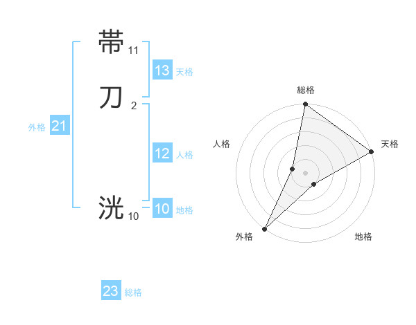 帯刀 洸さんの総格は23画の5点!