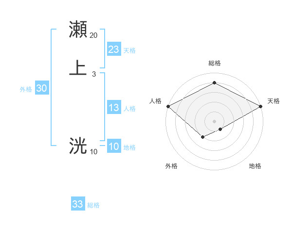 瀬上 洸さんの総格は33画の4点!