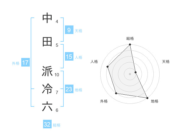 中田 派冷六さんを姓名の画数から五運を鑑定