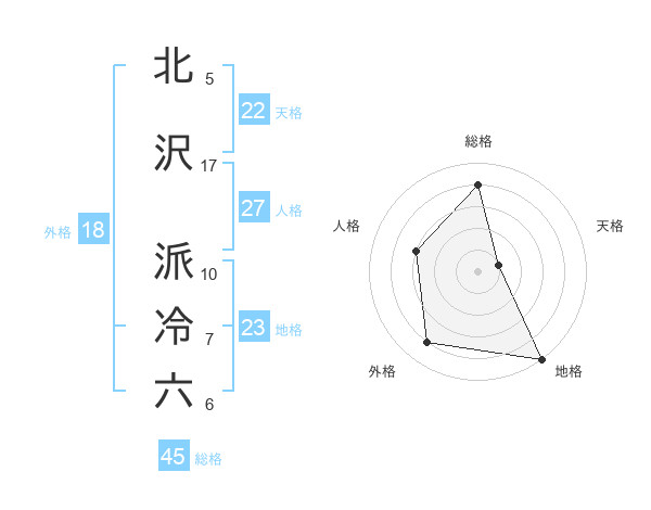 北沢 派冷六さんを姓名の画数から五運を鑑定