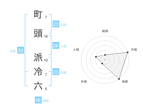 町頭 派冷六さんを姓名の画数から五運を鑑定