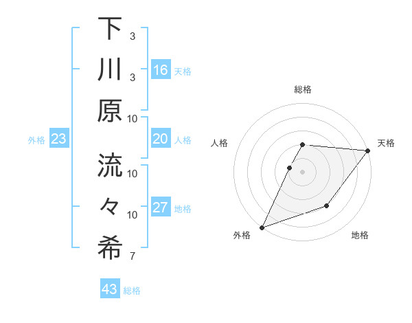 下川原 流々希さんを姓名の画数から五運を鑑定
