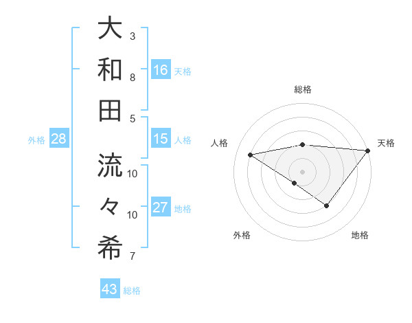 大和田 流々希さんを姓名の画数から五運を鑑定