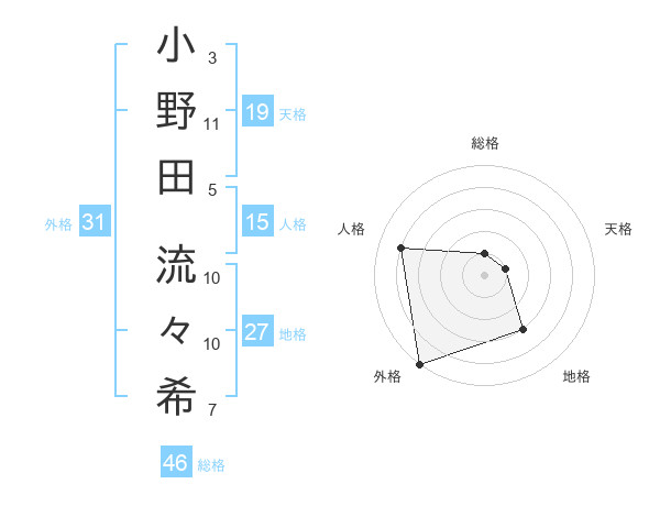 小野田 流々希さんを姓名の画数から五運を鑑定