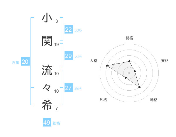 小関 流々希さんの総格は49画の2点!