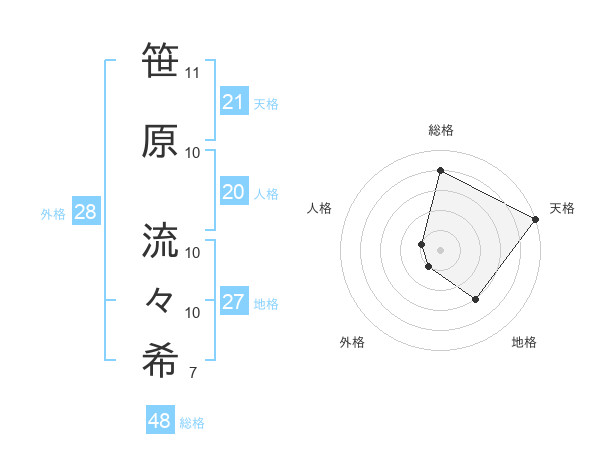 笹原 流々希さんを姓名の画数から五運を鑑定